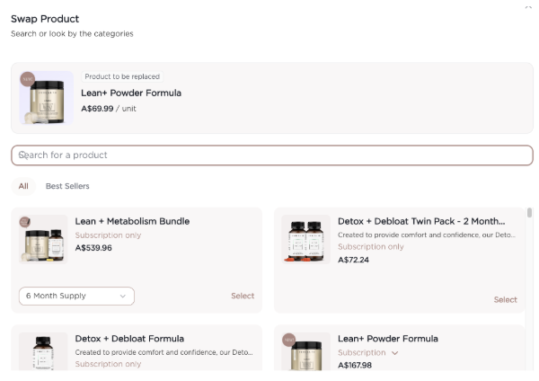 Search and select the product you would like to switch your subscription to